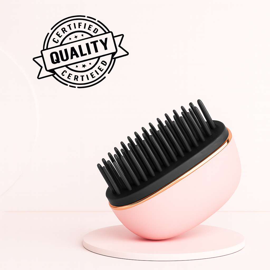 The BlushGlow Wireless Straight Brush features a beautifully sculpted, soft-matte body with a rose-gold accent ring that elevates your everyday styling routine. Its compact, egg-shaped design sits gracefully on your vanity and slips effortlessly into your bag—blending luxury aesthetics with real-world convenience.